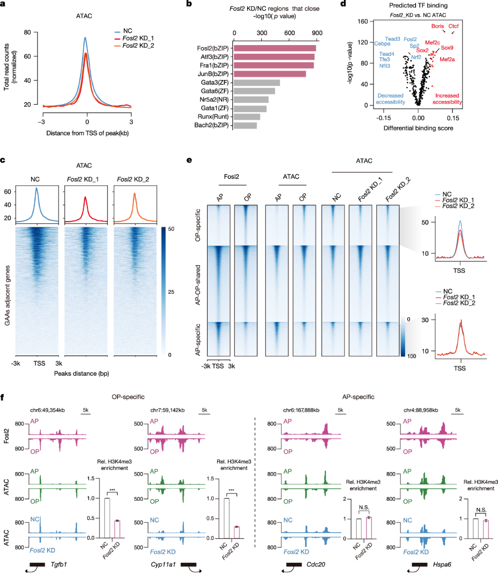 3. Fosl2招募至GAAs是塑造下游转录组图谱的必需条件