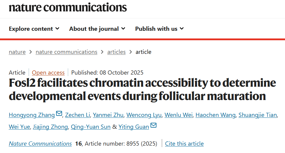 1. Zhang H, Li Z, Zhu Y, et al (2025) Fosl2 facilitates chromatin accessibility to determine developmental events during follicular maturation. Nat Commun 16:8955. https://doi.org/10.1038/s41467-025-64009-6
